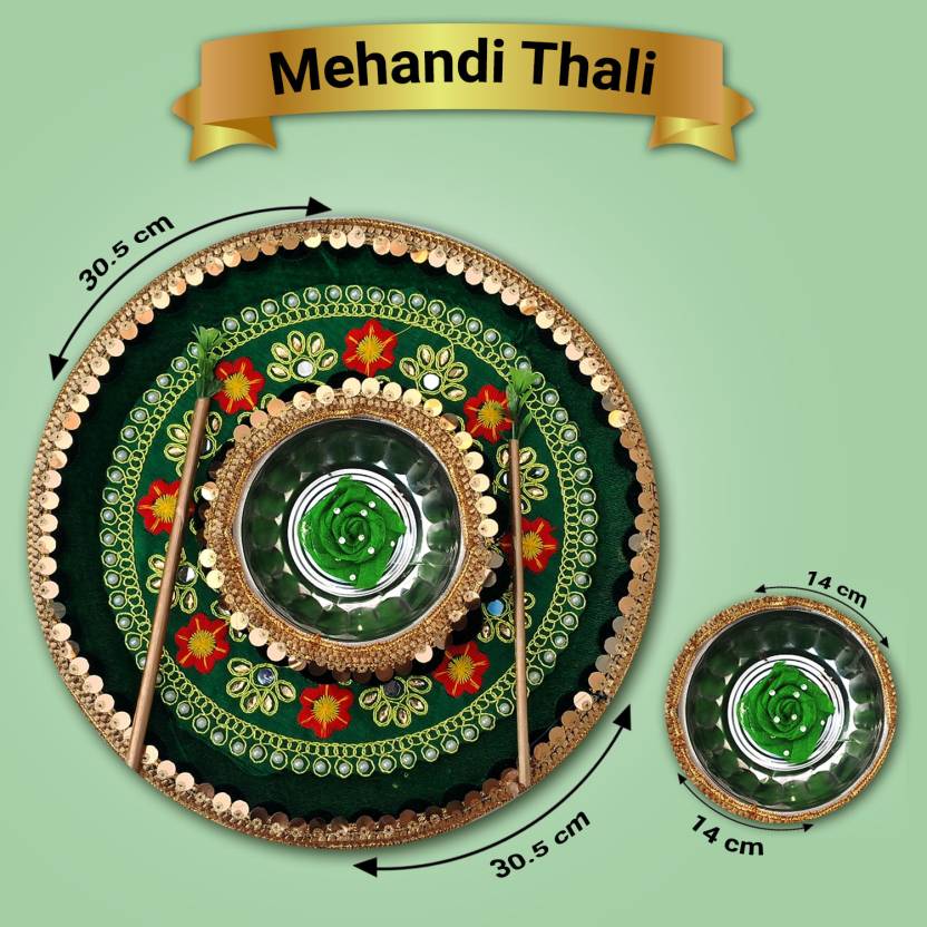 Crafted from durable materials such as stainless steel, brass, or silver-plated finishes, the Haldi and Mehndi Combo Thali is built to last. These materials ensure that the thalis will retain their shine and elegance, even after repeated use. The thalis are easy to clean and maintain, allowing you to use them for future celebrations without worrying about wear and tear.