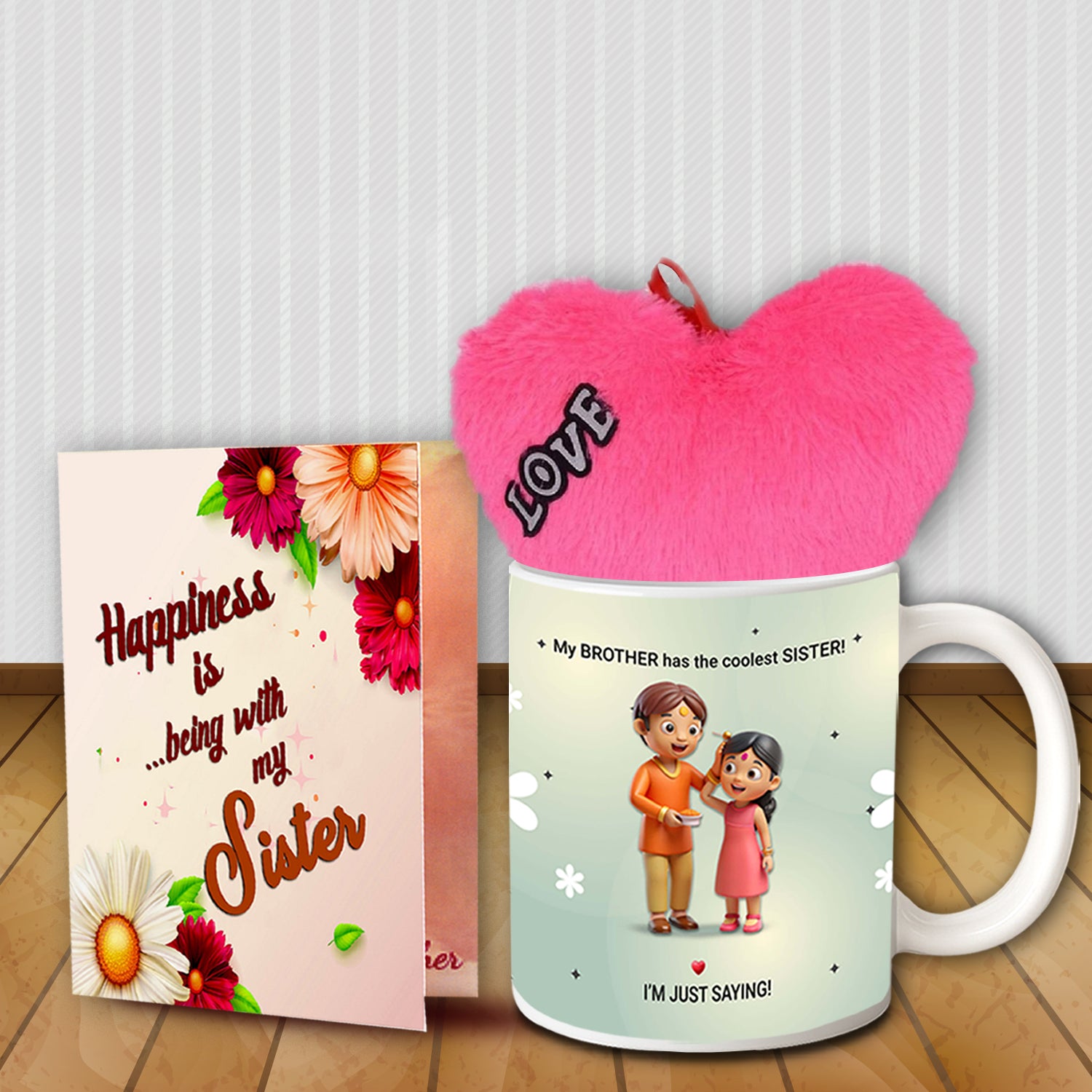 Your sister is one of the most important people in your life. Raksha Bandhan is your opportunity to show her that, and this gift combo helps you do it with sincerity, style, and love. Whether you’ve been celebrating Rakhi for decades or just started the tradition recently, this set ensures your gesture leaves a lasting impression. Make this Raksha Bandhan unforgettable by gifting your sister something that speaks to her heart. This Rakhi combo for sister with mug, card, and heart is your perfect choice for making her feel loved and remembered.