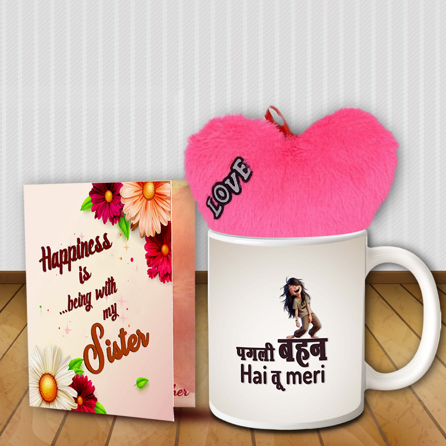 Raksha Bandhan is the perfect festival to celebrate the beautiful bond of love, care, and protection between siblings. If you’re searching for unique Rakhi gifts for sister, this thoughtfully designed combo is a wonderful way to express your feelings. The set includes a charming Printed Mug, a heartfelt Printed Greeting Card, and a soft Pink Small Heart – everything you need to make your sister feel truly special this Rakhi.